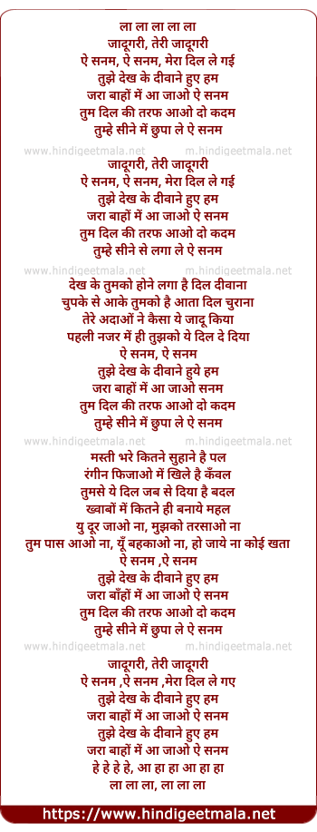 Lyrics of Jadugaree, Teree Jadugaree - जादूगरी तेरी जादूगरी