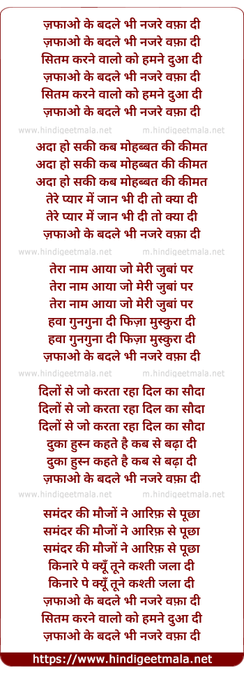 Lyrics of Jafaon Ke Badle Bhi Nazare Wafa Dee - ज़फाओ के बदले भी नजरे वफ़ा दी