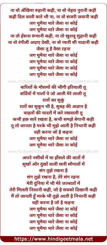 Lyrics of Jag Ghoomeya (Female) - जग घूमैया (फिमेल)