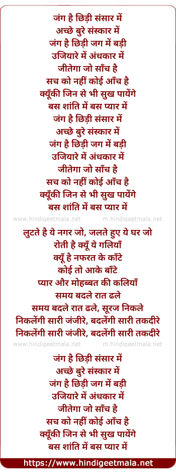 Lyrics of Jag Hai Chidi - जंग है छिड़ी संसार में