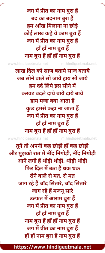 Lyrics of Jag Me Preet Ka Naam Bura Hai - जग में प्रीत का नाम बुरा हैं