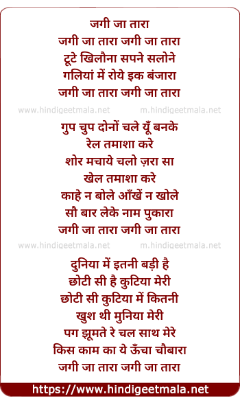 Lyrics of Jagi Jaa Tara Tute Khilona Sapne Salone - जगी जा तारा टूटे खिलौना सपने सलोने
