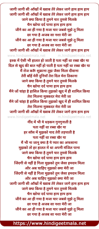 jagi jagi si aankho me khwab tere lekar jage hay hay hay