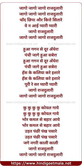 Lyrics of Jago Jago Rajdulari - जागो जागो जागो राजदुलारी