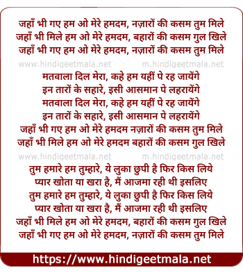 Lyrics of Jahaan Bhee Gaye Ham O Mere Hamdam - जहाँ भी गये हम ओ मेरे हमदम