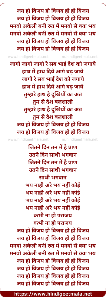 Lyrics of Jai Ho Vijay Ho - जय हो विजय हो विजय हो हो विजय