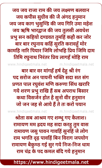 Lyrics of Jai Jai Jai Sugriv Raja - जय जय जय सुग्रीव राजा
