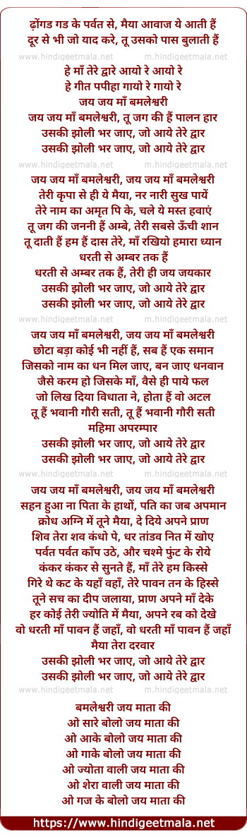 Lyrics of Jai Jai Maa Bhambleshwari - जय जय माँ बमलेश्वरी