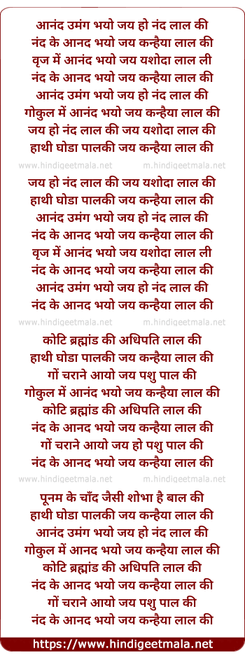 Lyrics of Jai Kanhaiya Lal Ki - जय कन्हैया लाल की