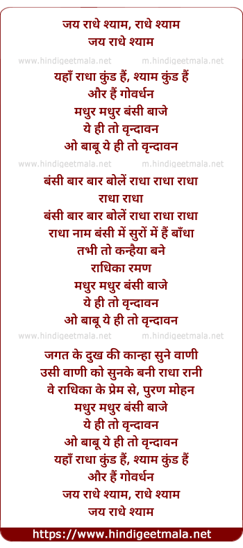 Lyrics of Jai Radhe Shyaam Radhe Shyaam - जय राधे श्याम, राधे श्याम