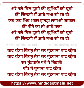 Lyrics of Jai Shiv Shankar Jhuth Bolne Wale Ka - अरे गले मिल झूमो की खुशियों को चूमो