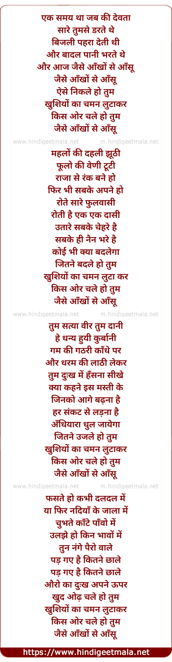 Poetic Translation - Lyrics of Jaise Ankhon Se Aasu - जैसे आँखों से आँसू