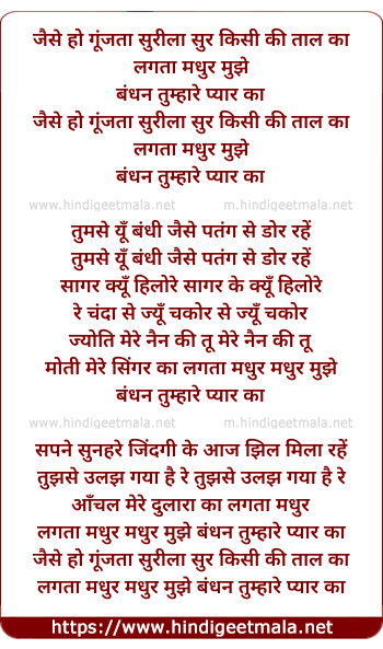 lagta madhur madhur mujhe bandhan tumhare pyar ka