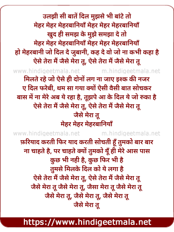 Poetic Translation - Lyrics of Jaise Mera Tu - जैसे मेरा तू