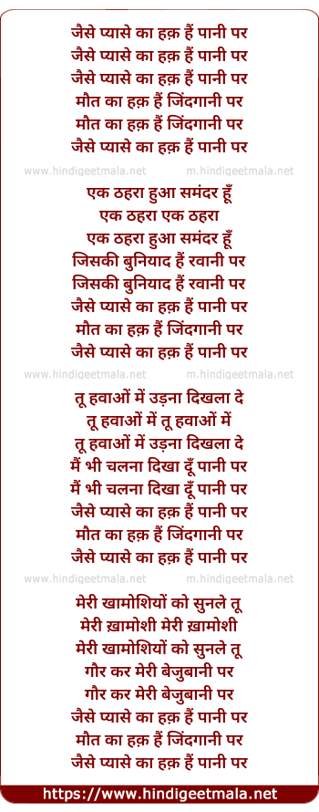 Lyrics of Jaise Pyaase Ka Hak Hai - जैसे प्यासे का हक़ हैं पानी पर