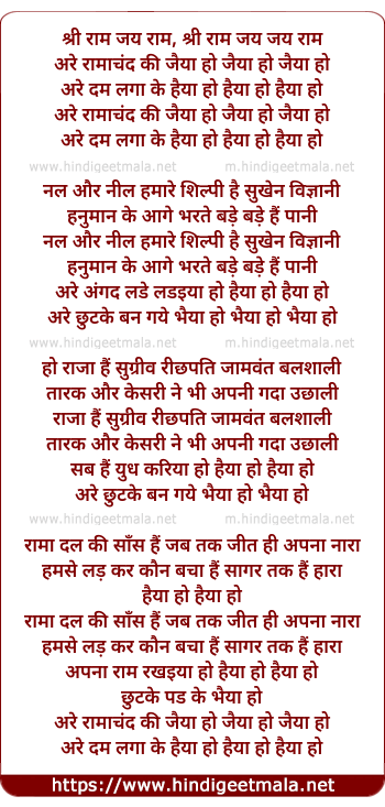 are ramachand ki jaiya ho jaiya ho, jaiya ho