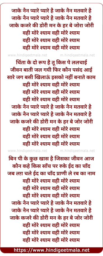 Lyrics of Jake Nain Pyare Pyare Hai - जाके नैन प्यारे प्यारे है