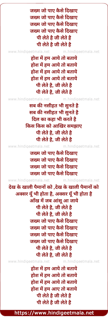 Lyrics of Jakhm Jo Paaye, Kaise Dikhaaye - जख्म जो पाए कैसे दिखाए