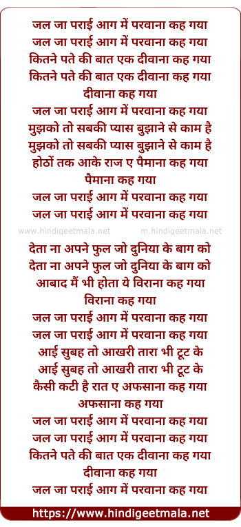 Lyrics of Jal Jaa Parayi Aag Me - जल जा पराई आग में