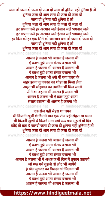 Jala Do Jala Do Duniya Yahi Duniya Hai To Duniya Ko Jala Do - जला दो जला दो दुनिया यही दुनिया है तो दुनिया जला दो