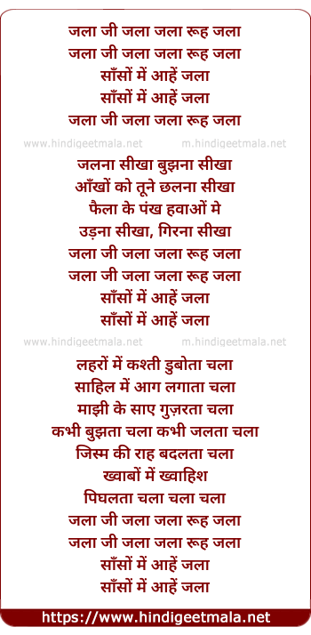 Lyrics of Jala Ji Jala, Jala Ruh Jala - जला जी जला, जला रूह जला