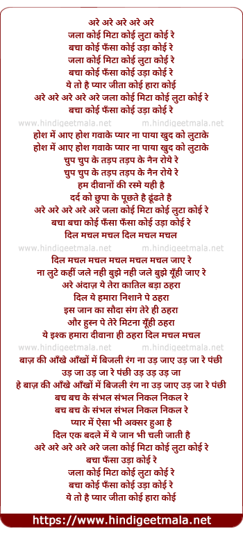 Lyrics of Jala Koyi Mita Koyi Luta Koyi Re - जला कोई मिटा कोई लुटा कोई रे