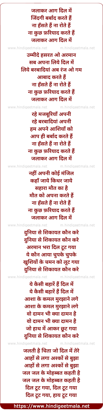 Lyrics of Jalaa Kar Aag Dil Men Zindagi Barabaad Karate Hain - जलाकर आग दिल में जिंदगी बर्बाद करते हैं