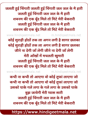 Lyrics of Jalati Huyi Chingari Jal Jal Ke Main Hari - जलती हुई चिंगारी जल जल के मैं हारी