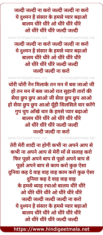 Lyrics of Jaldi Jaldi Na Karo Ye Dushman Hai Sansar - जल्दी जल्दी ना करो ये दुश्मन है संसार
