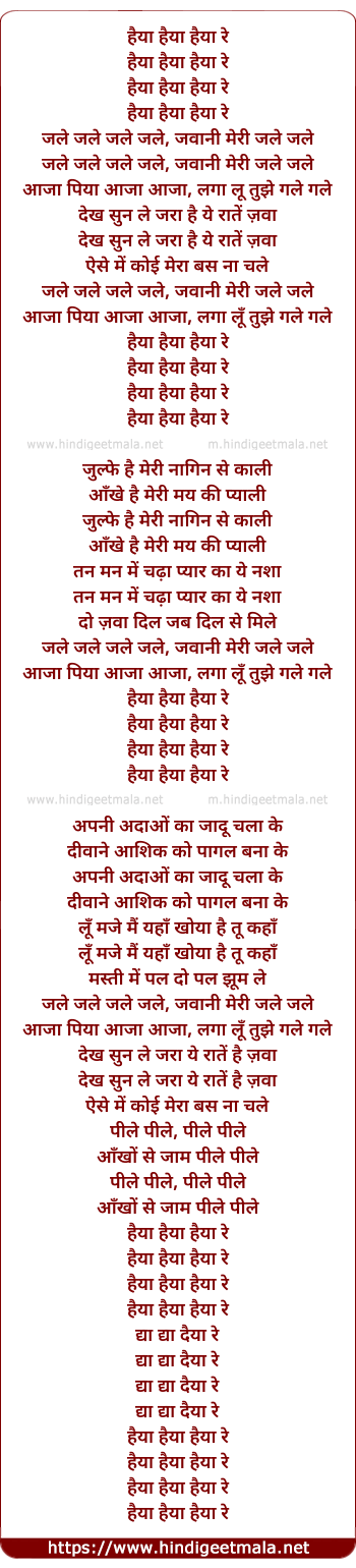 Lyrics of Jale Jale Jawani Meri - जले जले जवानी मेरी