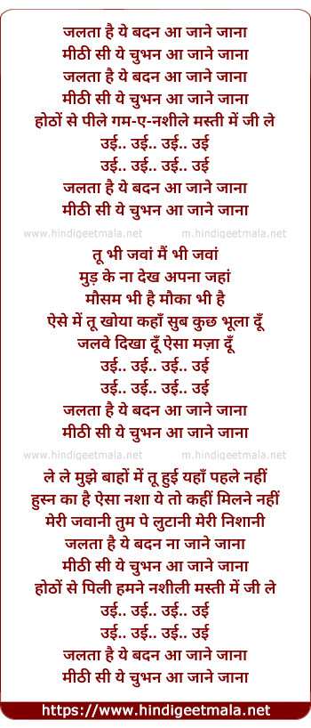 Lyrics of Jalta Hai Yeh Badan - जलता है ये बदन