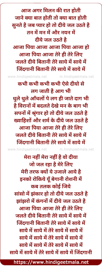 Lyrics of Jalte Diye - जलते दीये