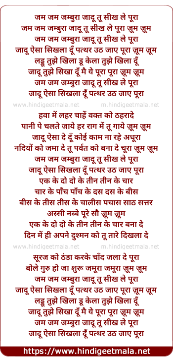 Lyrics of Jam Jam Jambura Jadu Tu Sikh Le Pura - जम जम जम्बुरा जादू तू सीख ले पूरा