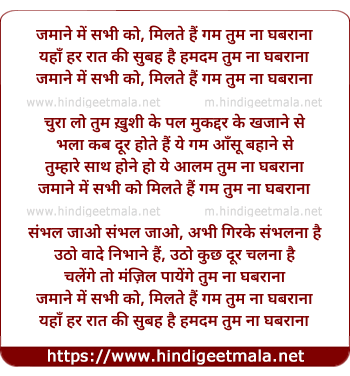 Lyrics of Jamane Me Sabhi Ko, Milate Hain Gum - जमाने में सभी को, मिलते हैं गम