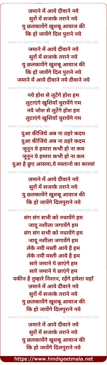 Lyrics of Jamane Me Aaye Diwane Naye - ज़माने में आये दीवाने नये