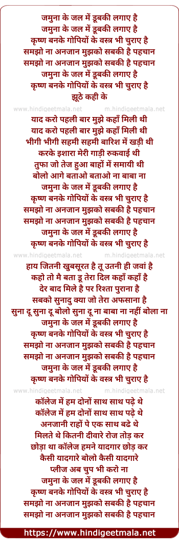 Lyrics of Jamuna Ke Jal Me - जमुना के जल में