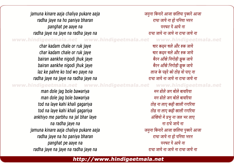 Comments for lyrics of song "Jamuna Kinare Aaja Chhalia Pukare Aaja"