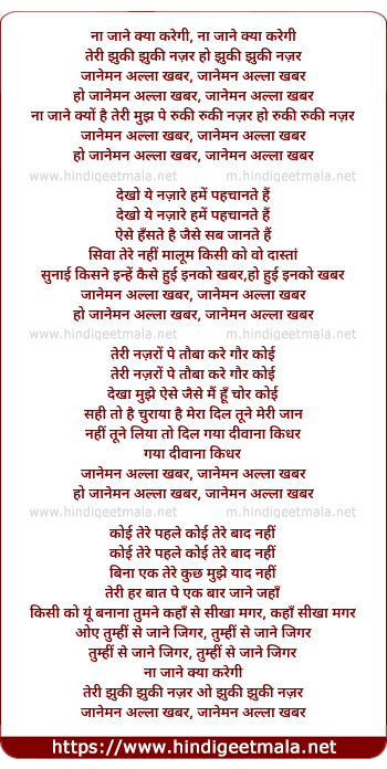 Lyrics of Janeman Allah Khabar Na Jane - जानेमन अल्ला खबर ना जाने
