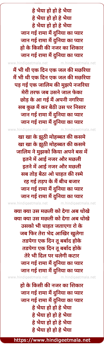 Lyrics of Jan Gayi Rama Main Duniya Ka Pyar - जान गई रामा मैं दुनिया का प्यार
