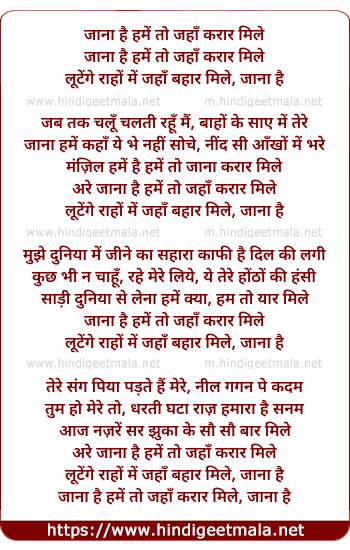 Lyrics of Jana Hain Hame To Jaha Karar Mile - जाना है हमें तो जहाँ करार मिले