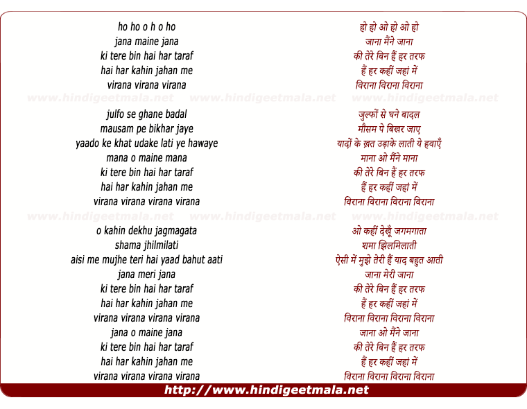 Lyrics of Jana Maine Jana - जाना मैंने जाना