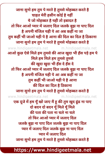 Lyrics of Jana Suno Ham Tum Pe Marte Hai - जाना सुनो हम तुम पे मरते है