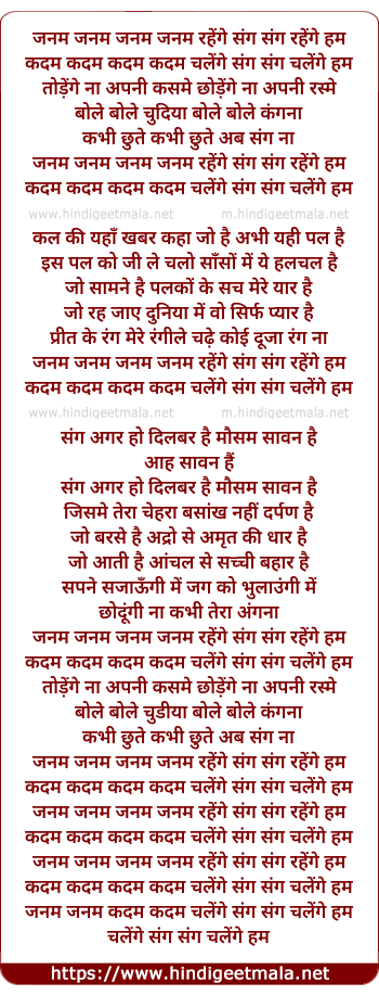Lyrics of Janam Janam Janam Janam - जनम जनम जनम जनम