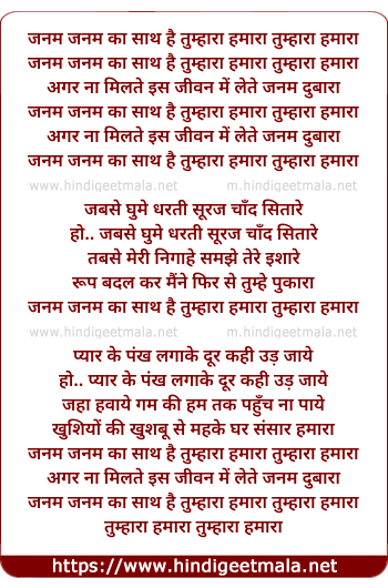 Lyrics of Janam Janam Ka Sath Hai Tumhara Hamara - जन्म जन्म का साथ है तुम्हारा हमारा तुम्हारा हमारा