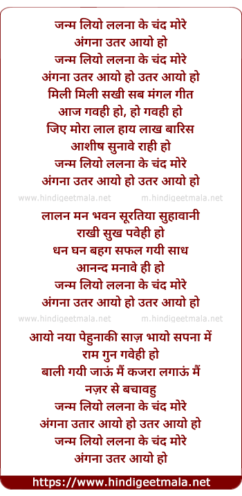 Lyrics of Janam Liyo Lalna Ke Chand More - जन्म लियो ललना के चंद मोरे