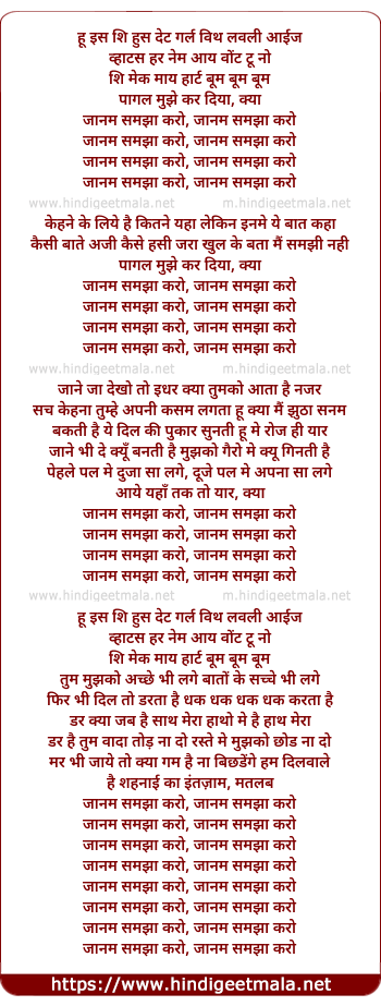 Lyrics of Janam Samjha Karo - जानम समझा करो