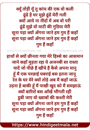Lyrics of Jane Hum Gum Hai Kahan - जाने हम गम है कहाँ