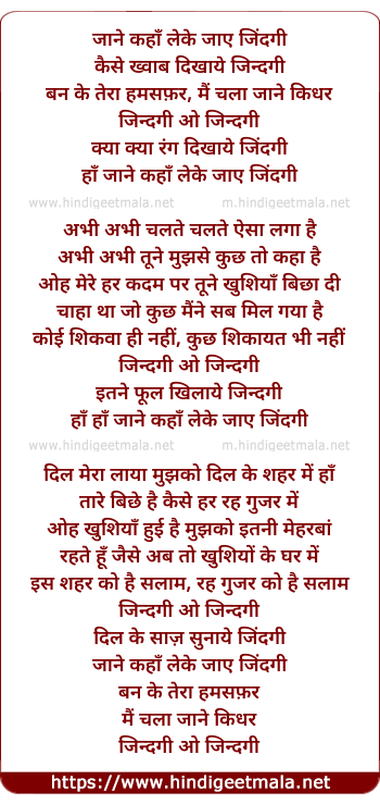 Lyrics of Jane Kaha Leke Aaye Zindagi - जाने कहाँ लेके जाए जिंदगी