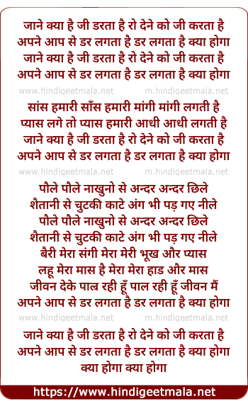 Lyrics of Jane Kya Hai Jee Darta Hai - जाने क्या है जी डरता है