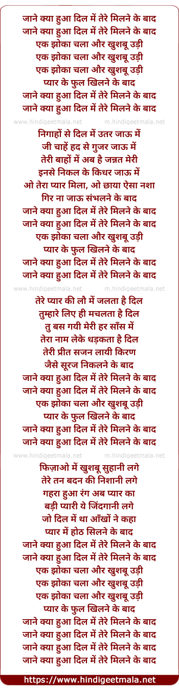 Lyrics of Jane Kya Hua Dil Me - जाने क्या हुआ दिल में